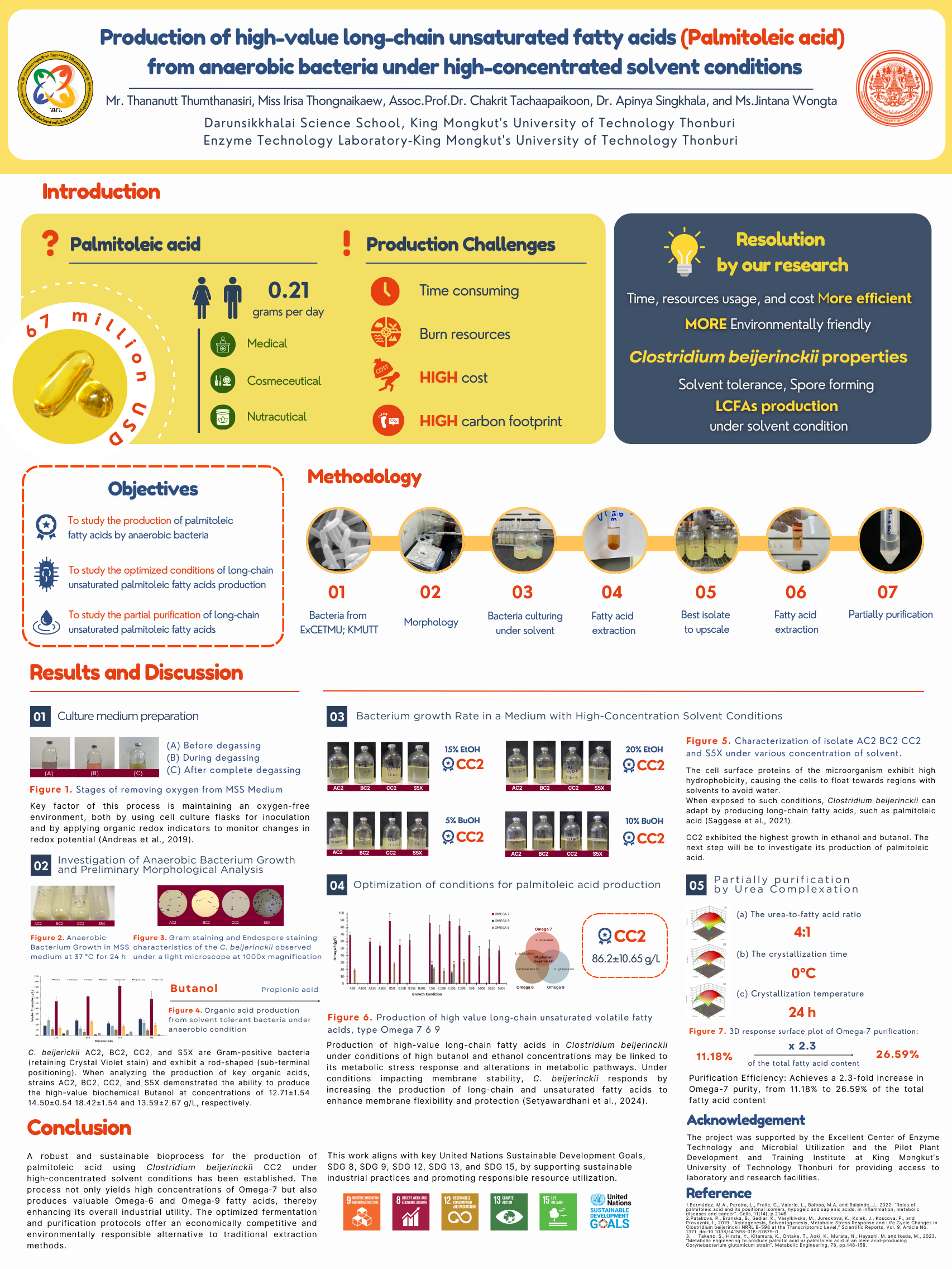 Production of high-value long-chain unsaturated fatty acids (Palmitoleic acid) from anaerobic bacteria under high-concentrated solvent conditions