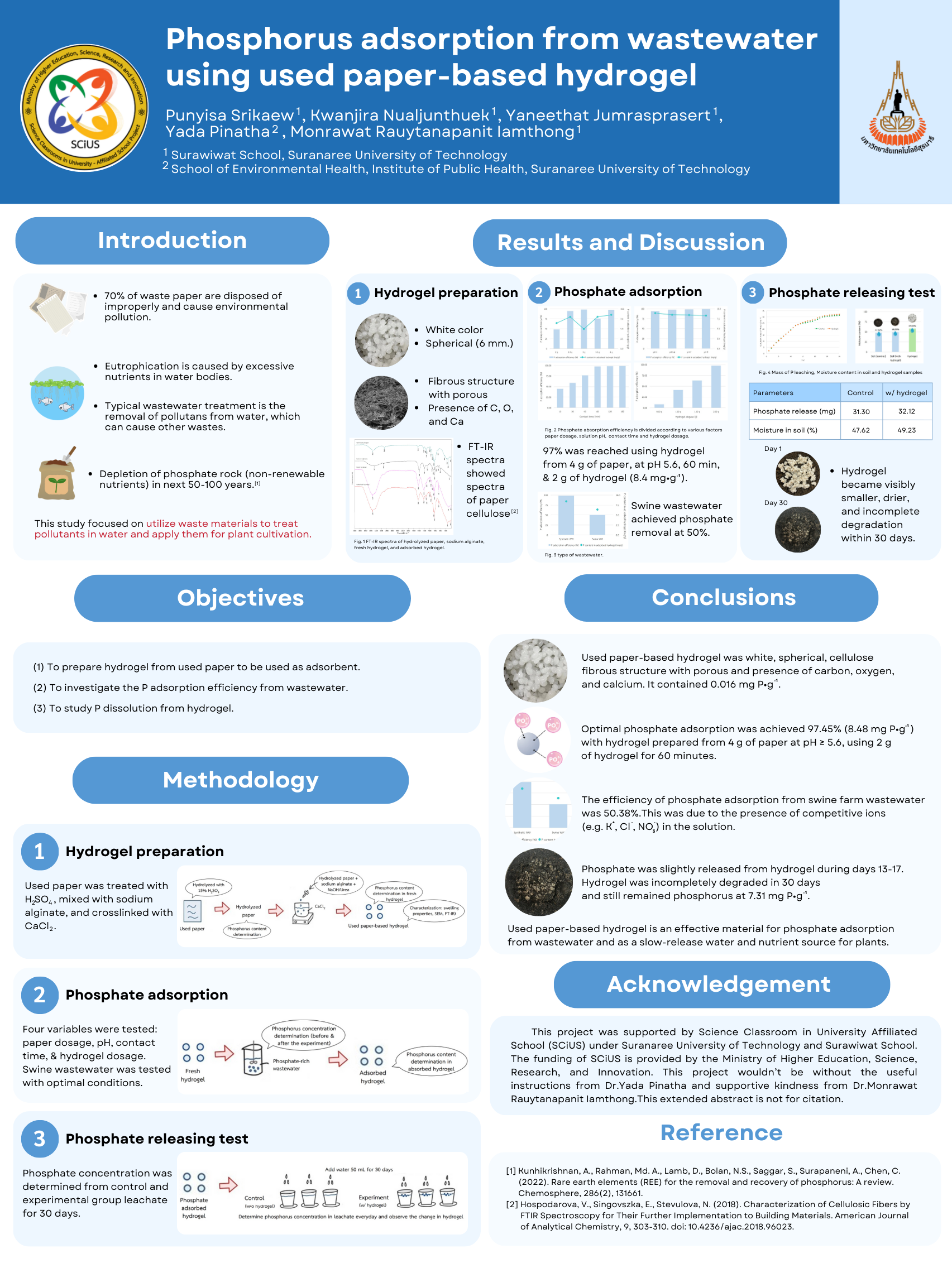 Efficiency of waste paper-based hydrogel in phosphorus adsorption from wastewater and its application as phosphate fertilizer